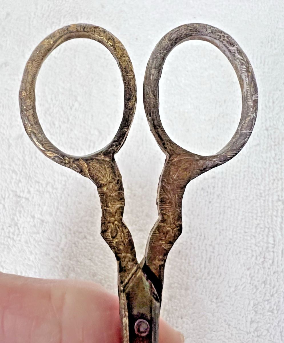 Vintage Antique Embroidery Scissors Worn Gilt Decorated Floral Handles 3 5/8"