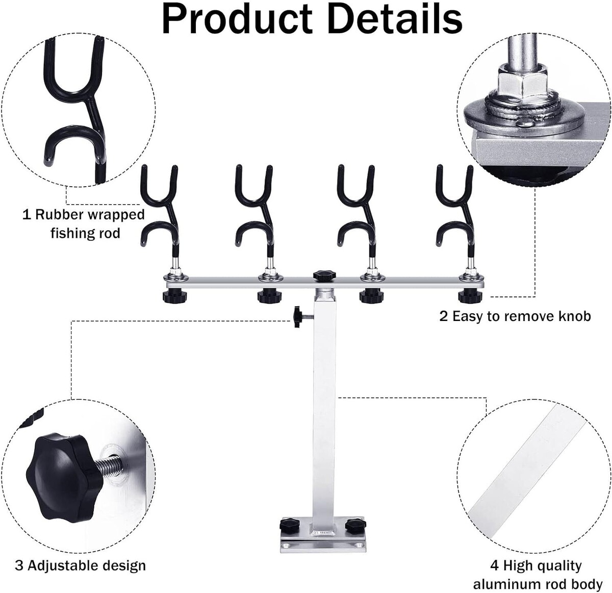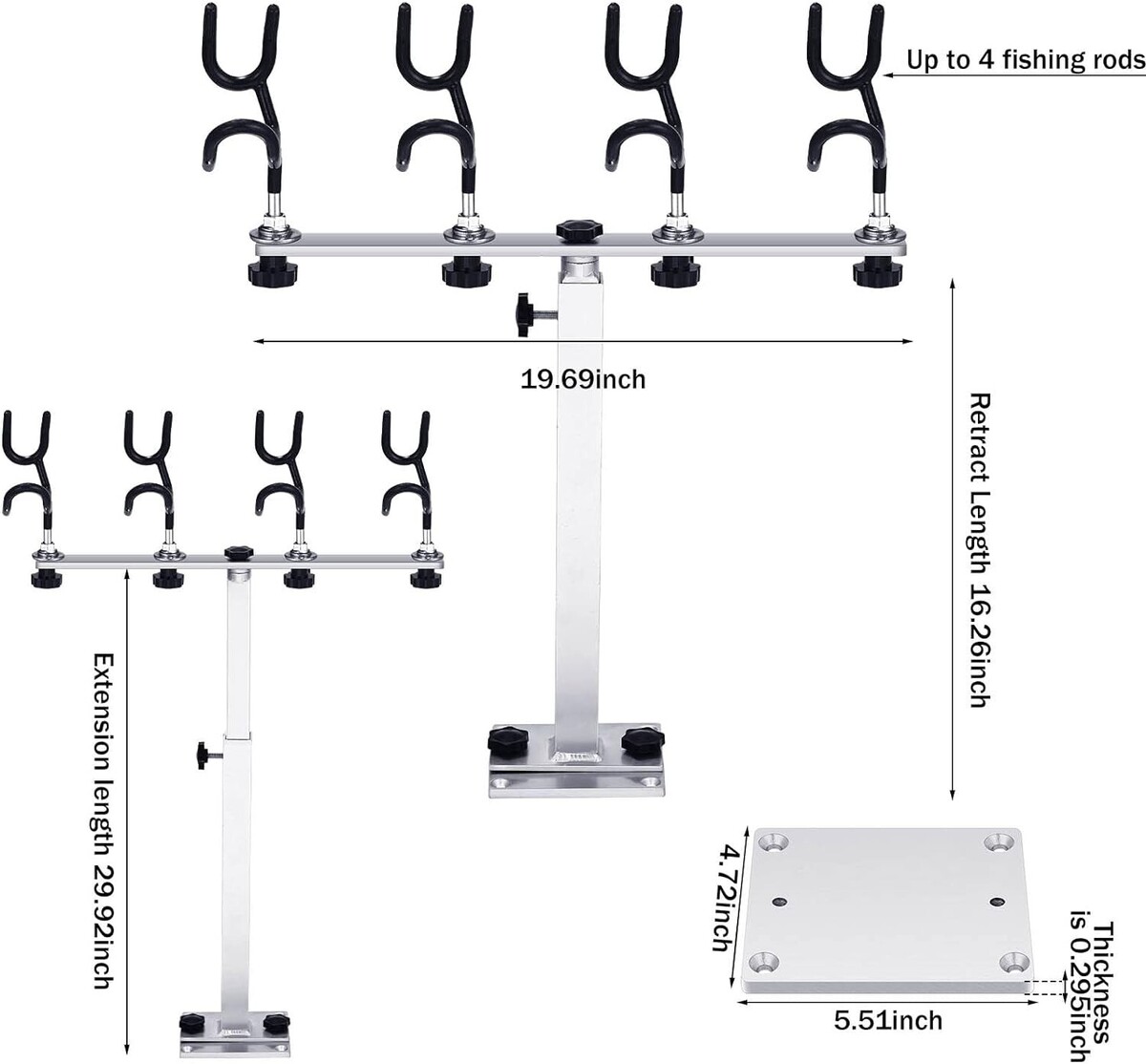 Clever Design: these fishing pole holders for boats are designed to accommodate up to 4 rods, improving your fishing efficiency, practical and utility; With bar sizes ranging from 12 to 20 inches, bringing a lot of convenience to you
