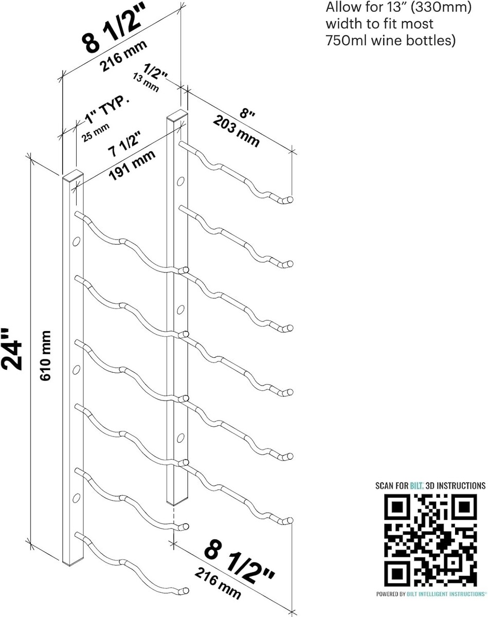 KEY FEATURES: Backed by a satisfaction, this modern wine storage option is easy-to-install with the BILT 3D interactive app on any wall in your home. Hardware for drywall and wood-backed wall installs included.
