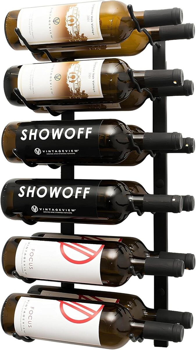 W Series Wine Rack 2 - Double Depth, Metal Wall Mounted Wine Rack - Modern, Easy Access Wine Storage - Space Saving Wine Rack with 12 Bottle Storage Capacity Matte Black