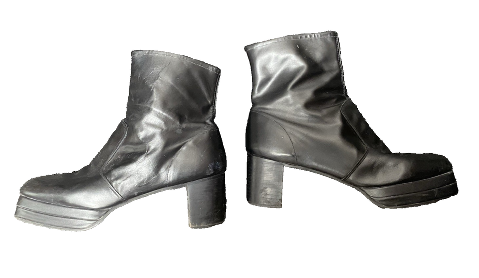 Hire - Gents 70’s Black Leather Platform Boots - Size 10 7 day hire service f...