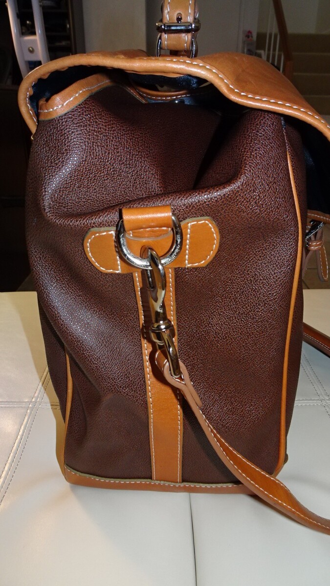 This high quality wine tote features durable leather trim, sturdy construction, and insulated interior to help protect beverages while transporting to picnics, dinners, parties, or gifting occasions. The interior is clean and unused.