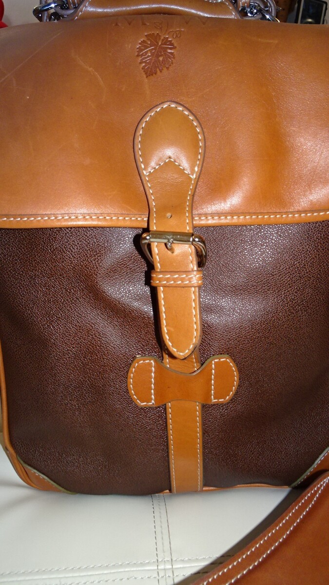 This classic leather wine carrier is a collectible wine accessory from Mulholland ? elegant, functional, and perfect for wine enthusiasts or as a high-end gift.