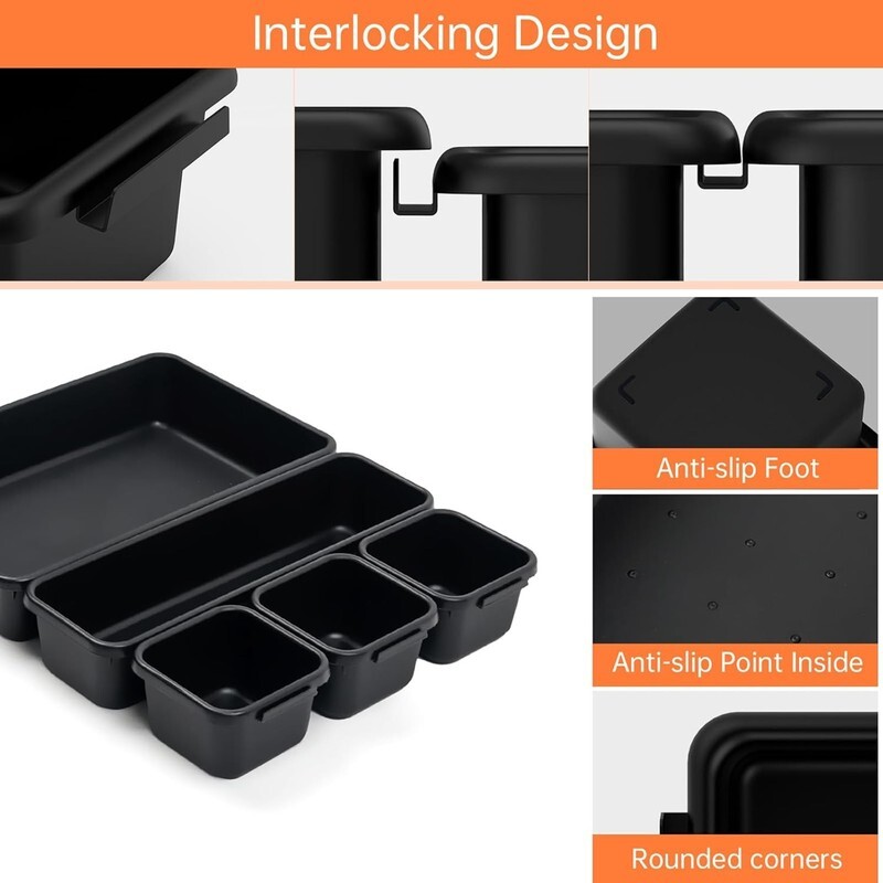 45 Pack Tool Box Organizer Tray Divider, Toolbox Desk Drawer Organizer, Black