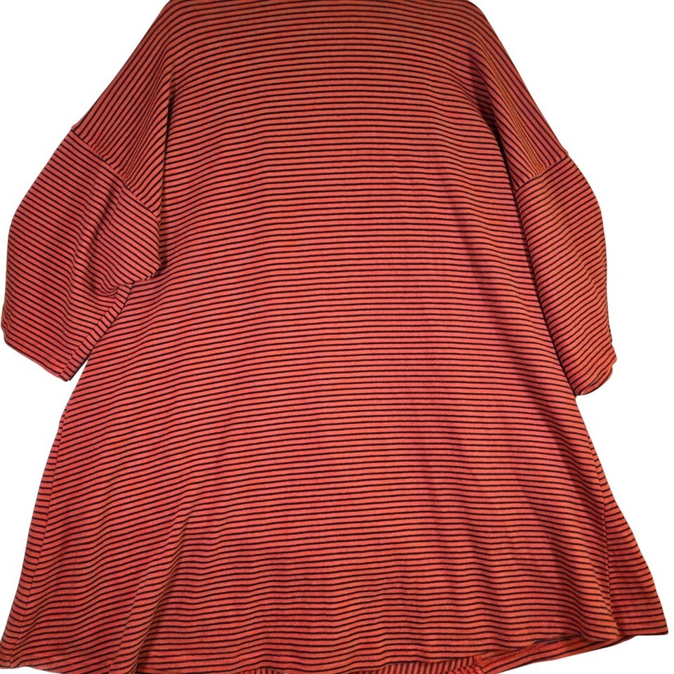 KLEEN Women's M Rust Black Striped Open Front Cardigan Lagenlook Artsy