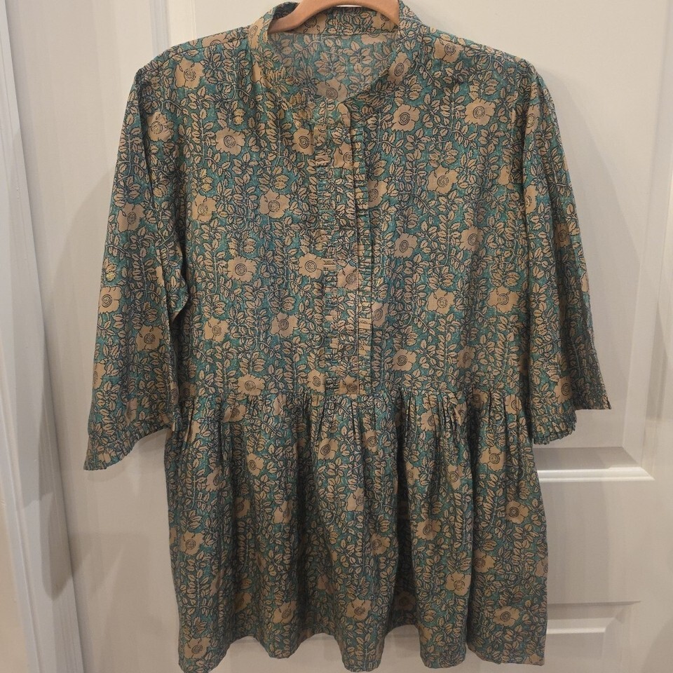 LIBAS Boho Green Floral Cottagecore Kurti Tunic A-Line Top Size M/L Fairycore