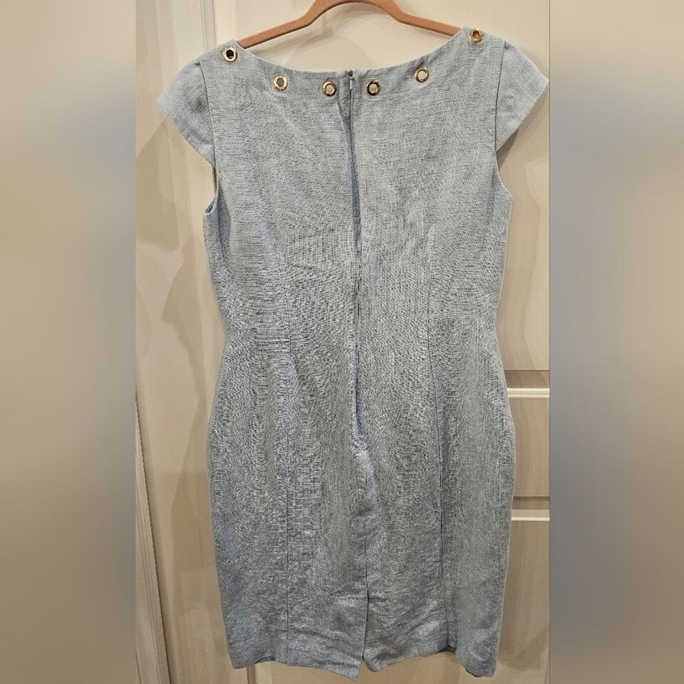 MAX MARA Powder Blue Flax Linen Knee-length Dress Size 12 Wedding Guest Career