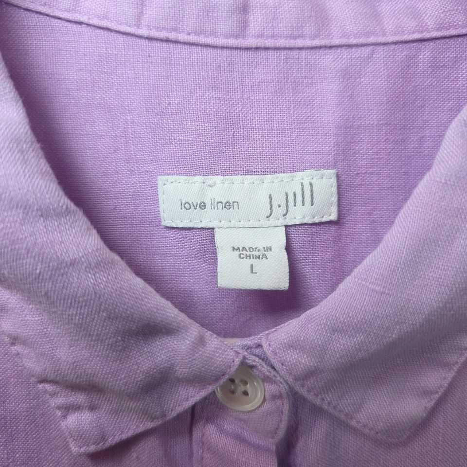 J JILL 100% Linen Light Purple Button Down Shirt Blouse Sz L Relaxed Lagenlook