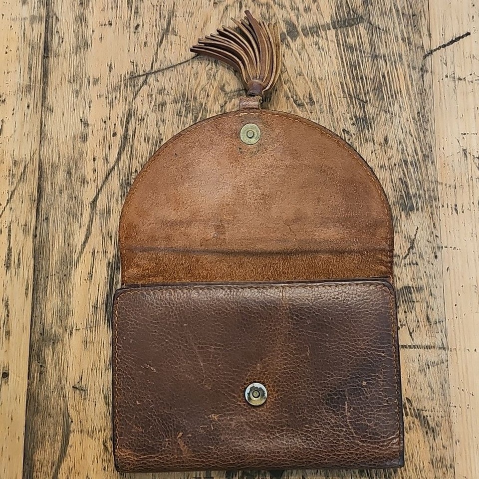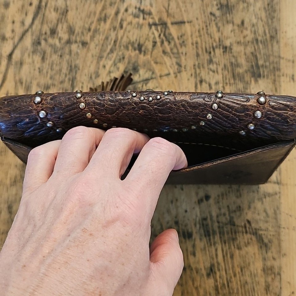 PATRICIA NASH Colli Brown Leather Trifold Embellished Tassel Wallet Clutch