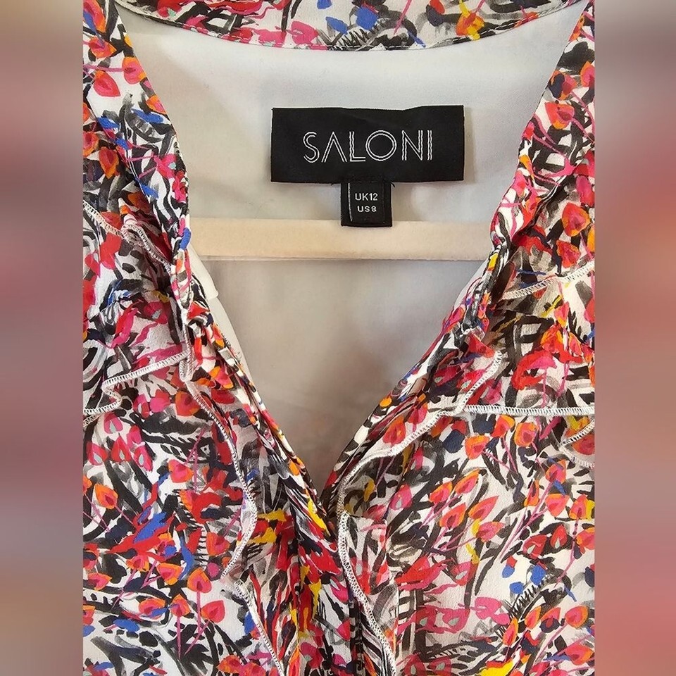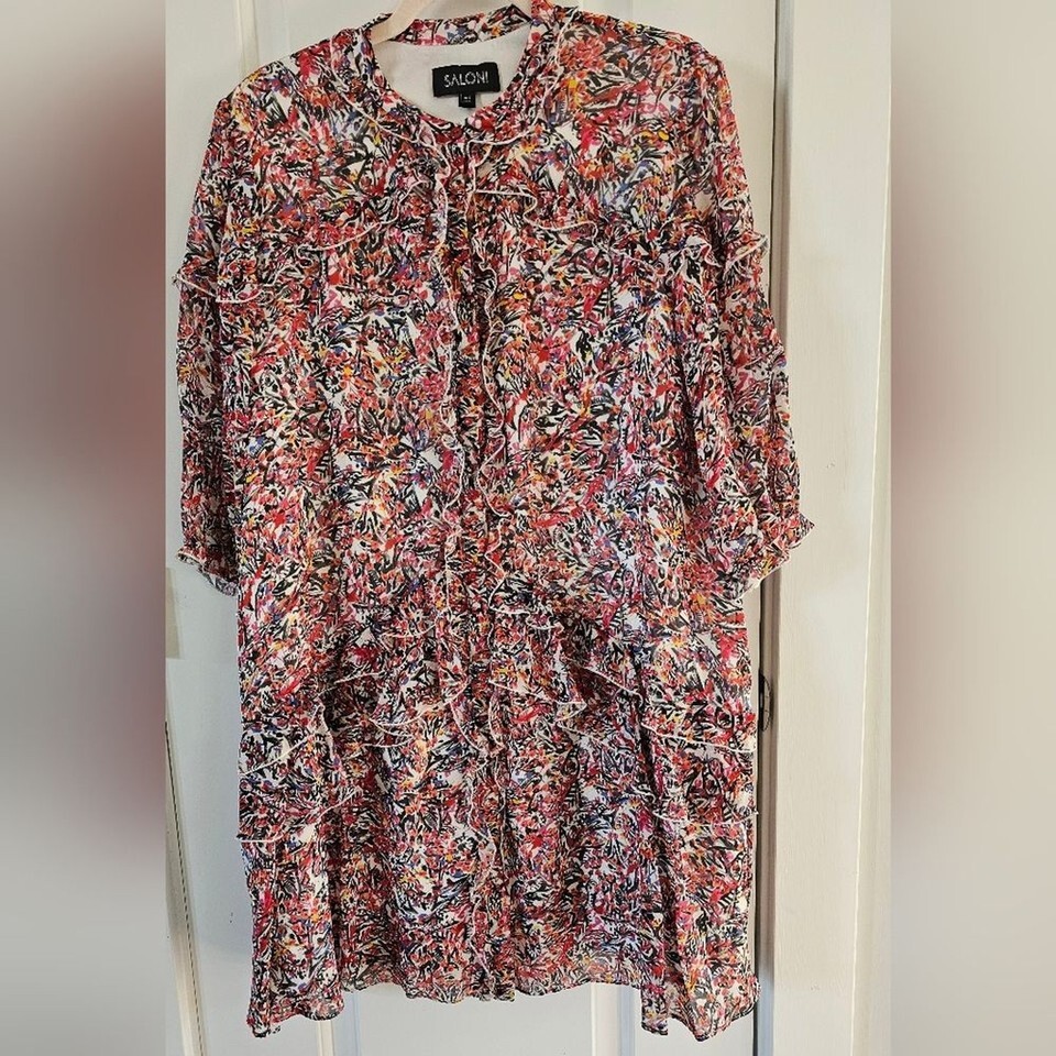 SALONI Pink and Blue Ruffled Mini Dress Size and 32 similar items
