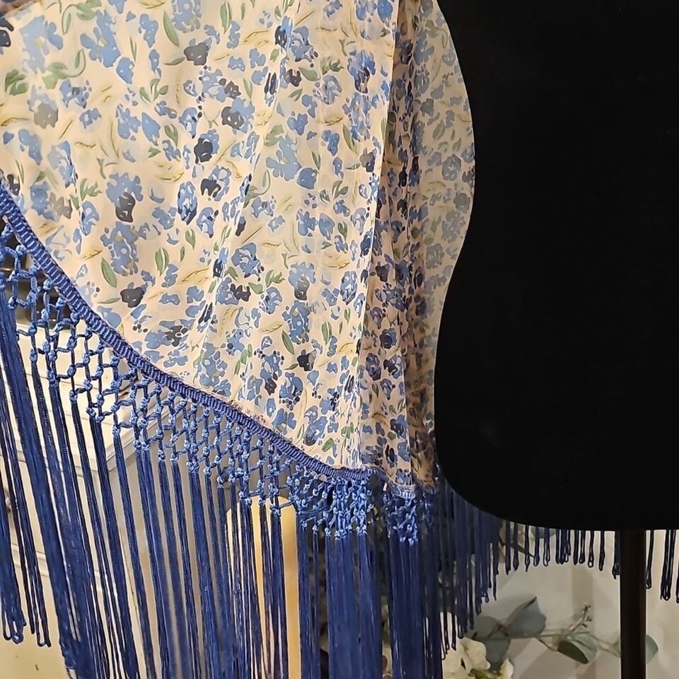 SUGARLIPS Butter Yellow Floral Fringe Kimono Size Medium Cottagecore Grannycore