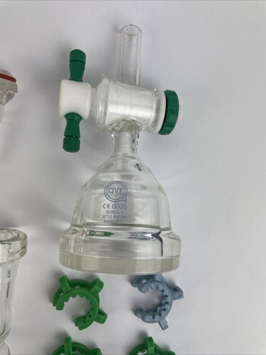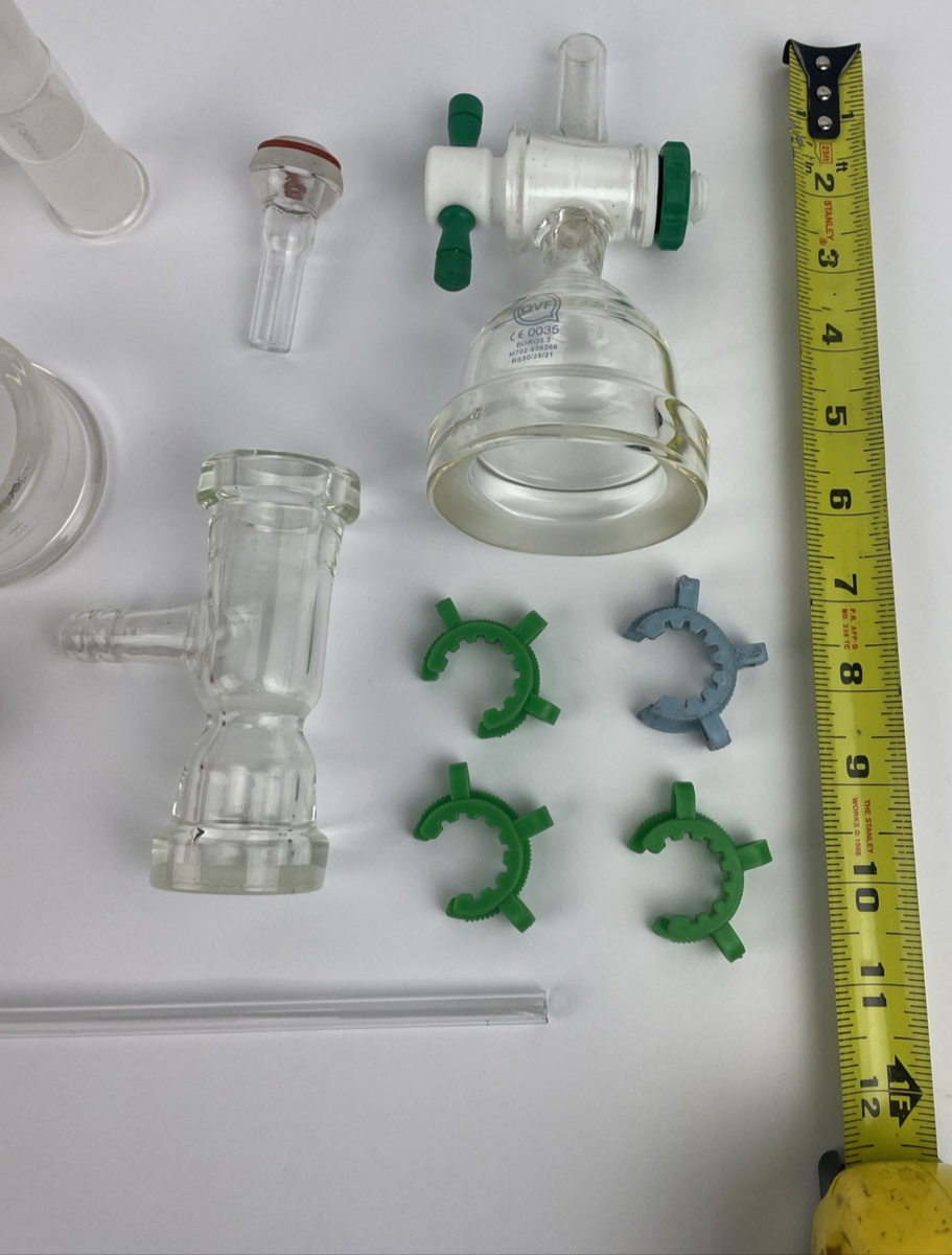 Schott Duran Glass Lab + QVF Duran BORO3.3 + ChemGlass + Pyrex Glass Funnel Beaker Stop Assorted LOT Acquired at Auction