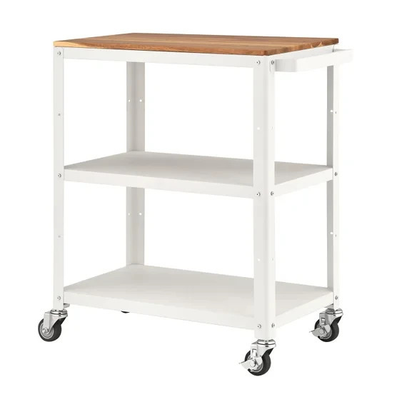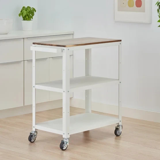 TRINITY 3-tier Metal Kitchen Cart with Acacia Top