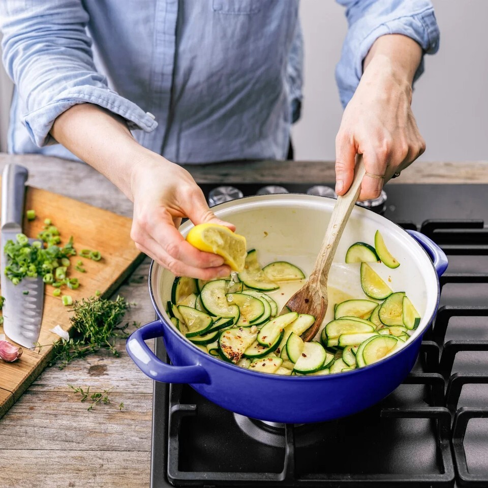 Crafted from enameled iron?a tougher material than cast iron that heats quickly and evenly. Our enameled iron ovens are 30% lighter than the lightest premium cast iron ovens.