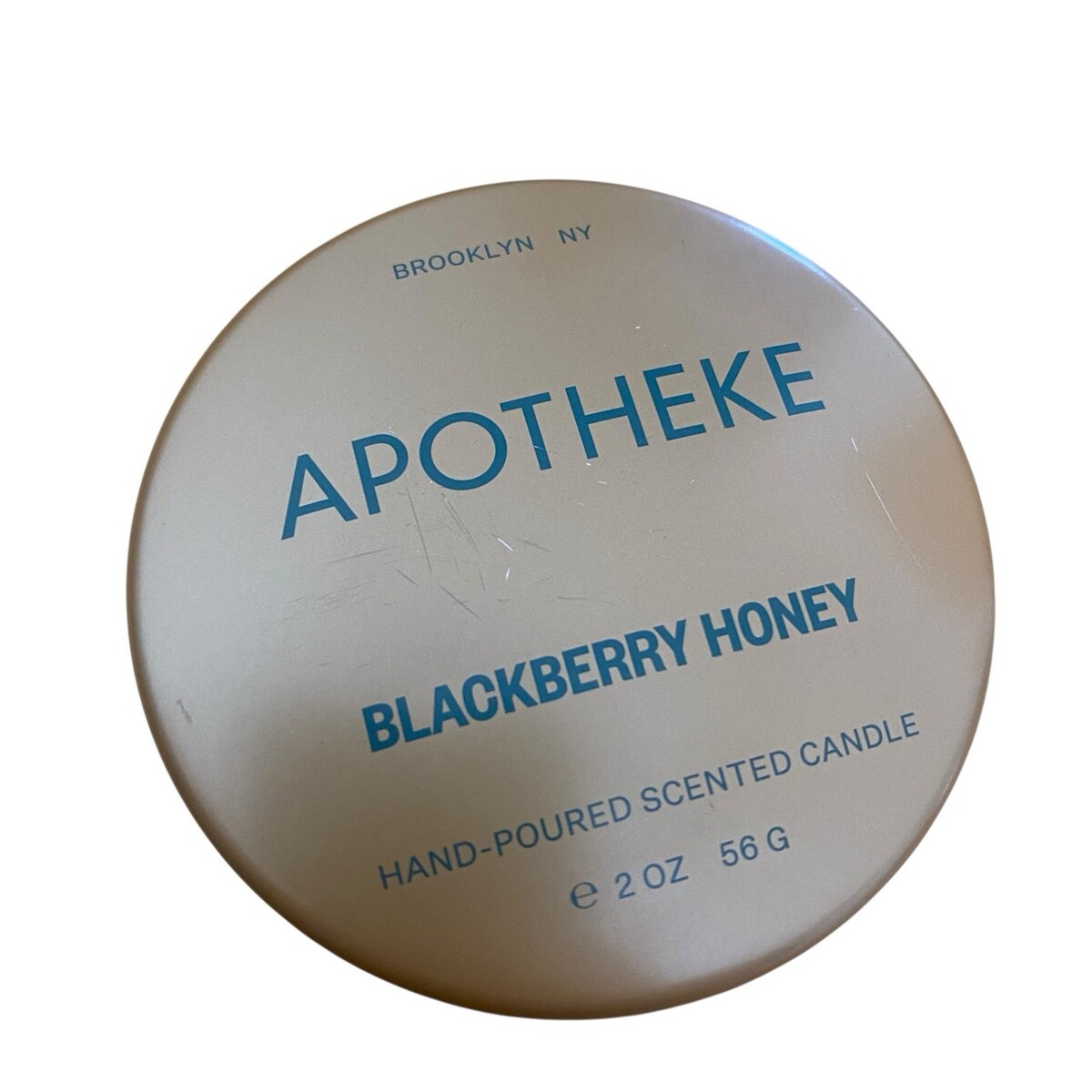 As shown - candles are new and unused, but tins have some scratches.