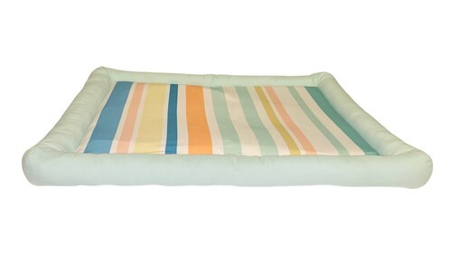 Comfortable pet bed pad suitable for dogs or cats, designed for use on floors, in crates, or as a liner. Features a padded foam interior and zippered cover that allows the foam to be removed for laundering.