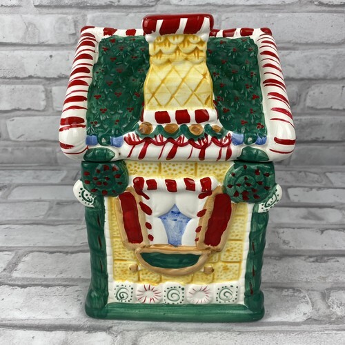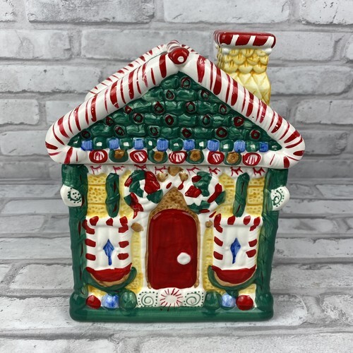 Christmas Gingerbread House Cookie Jar Canister 9 Inches Vintage
