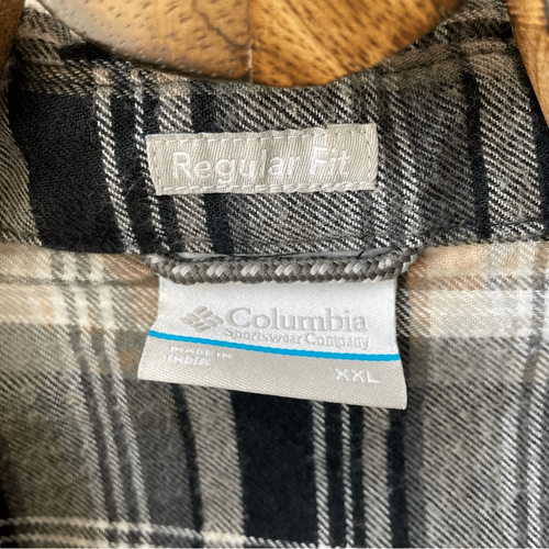 Columbia Plaid Flannel Button Up Shirt Black Salmon Cotton XXL