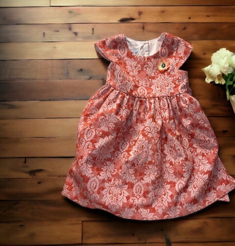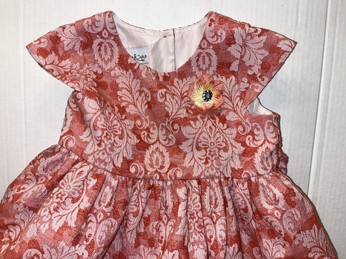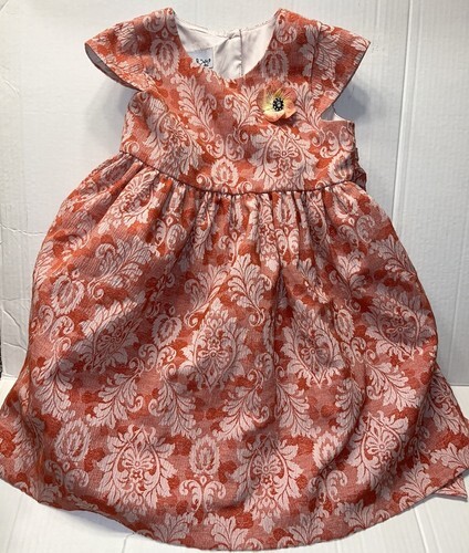 Pippa & Julie Girl's Dress Size 4T Coral Rust Floral Baroque Poly Blend