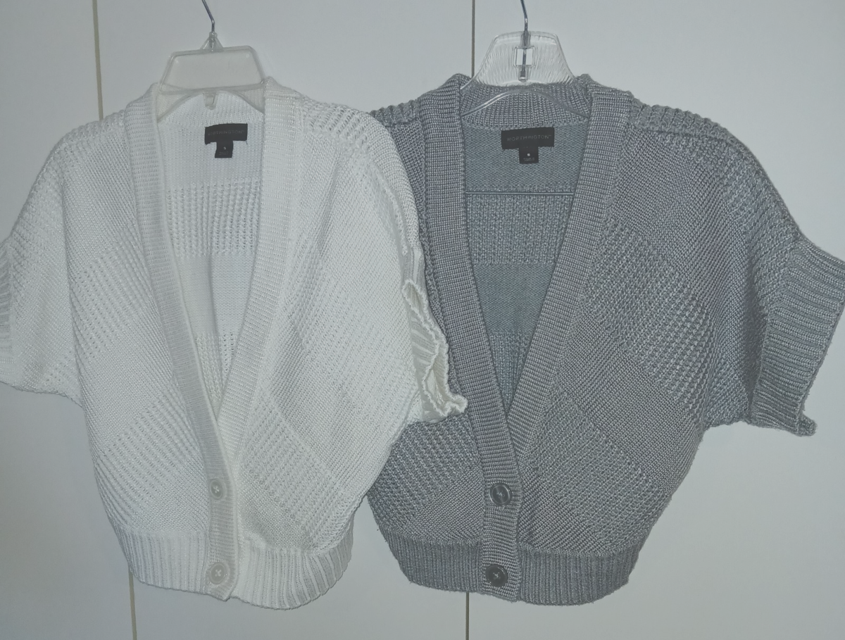 2 WORTHINGTON LADIES SWEATER SHRUGS-S-GRAY & WHITE-NWOT-COTTON/RAYON-NICE