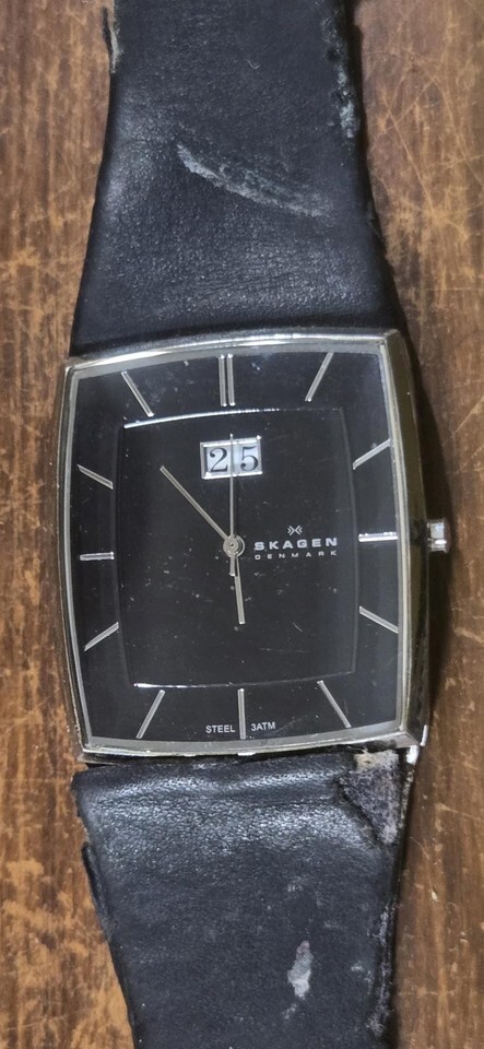 Skagen Men's 567LSLB1 Stainless Steel Date watch w Black Genuine Leather Strap