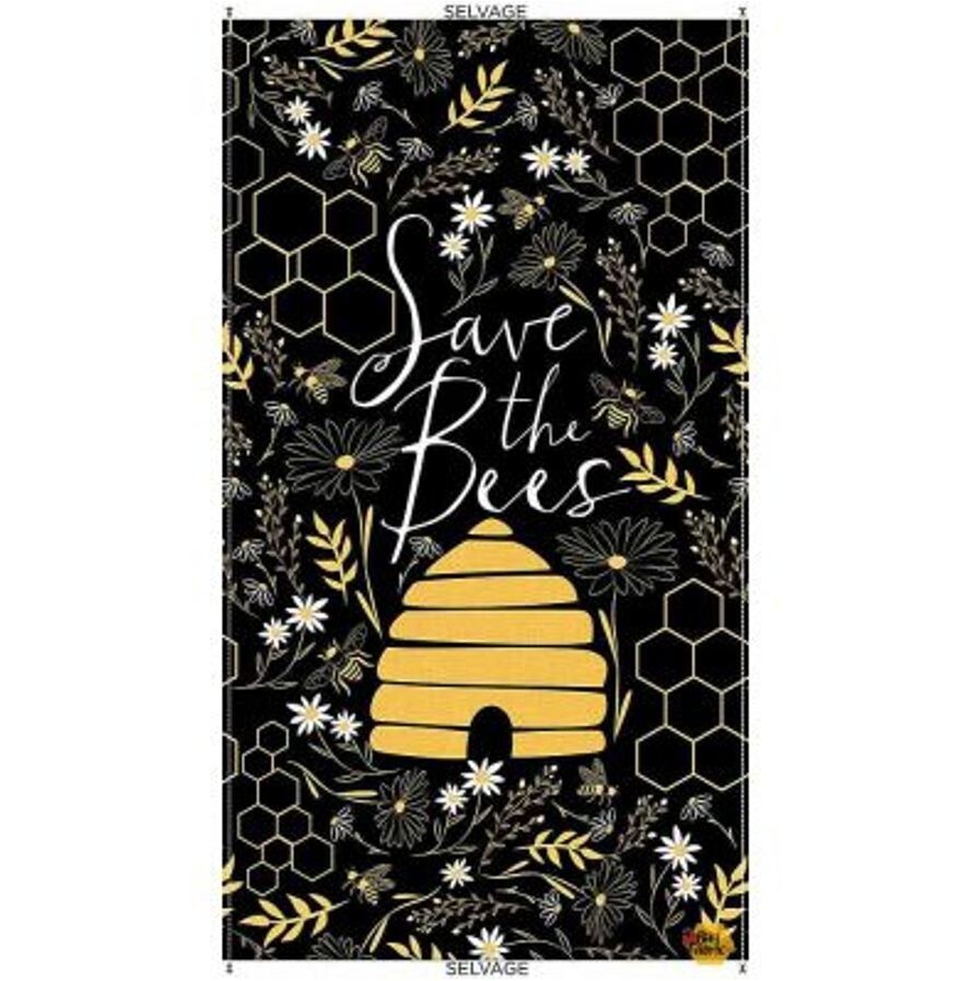 24" X 44" Panel Save the Bees Honeycomb Beehive Cotton Fabric Panel (D383.68)