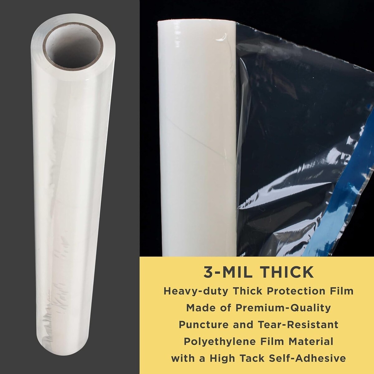 Heavy-Duty Film: Made from durable, thick transparent polyethylene, this film resists punctures and tears. Its high-tack self-adhesive ensures strong, reliable adhesion to surfaces for effective protection.