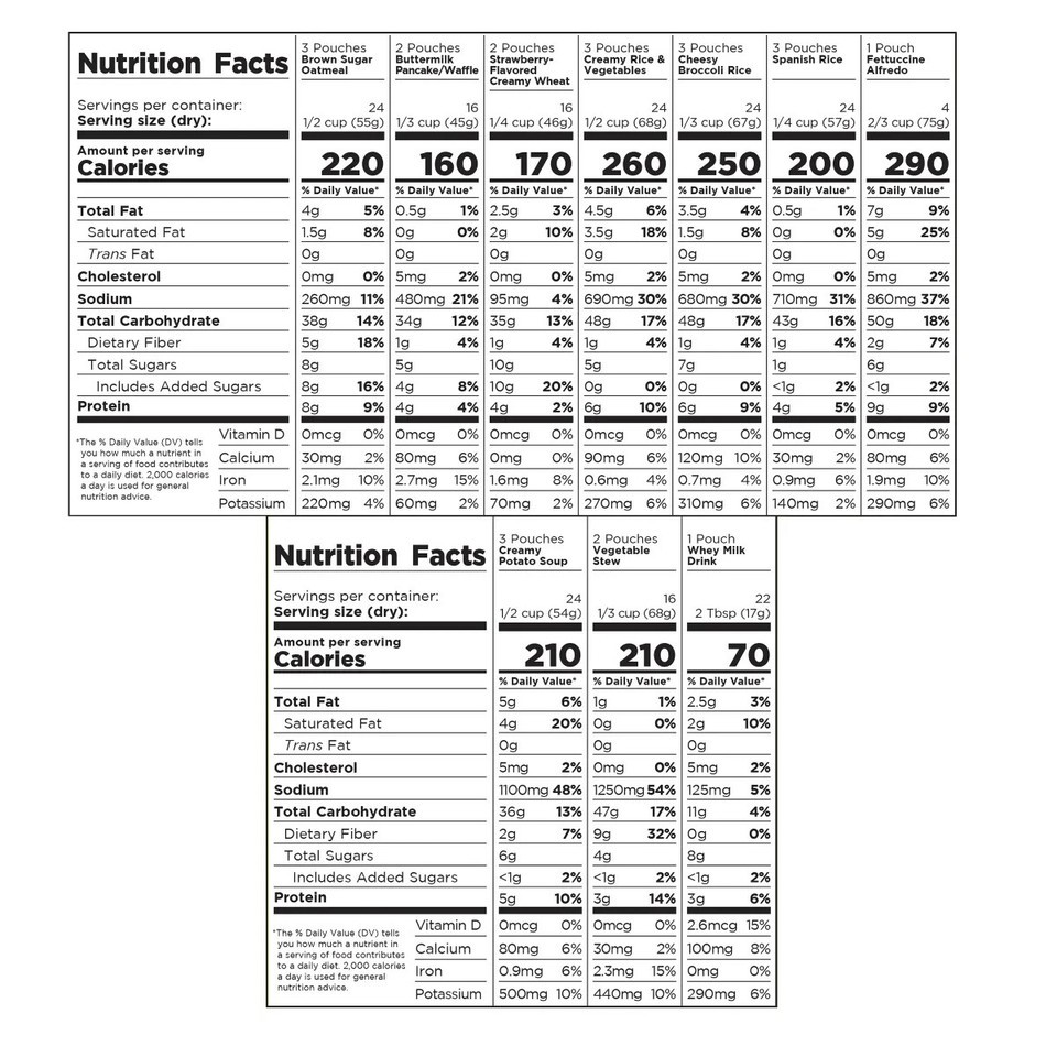 3 Pouches Creamy Rice and Vegetables (8 servings each) ? Shelf life: up to 25 years