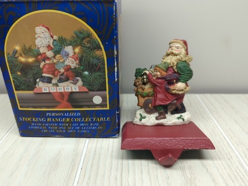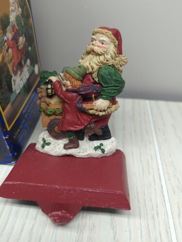 Studio Eluceo Cast Iron Resin Xmas Stocking Holder Santa Child Lantern Cart