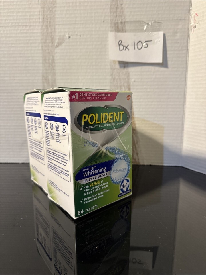 Polident Overnight Whitening Daily Denture Cleanser Tablets, 84 Count 2 Pack.