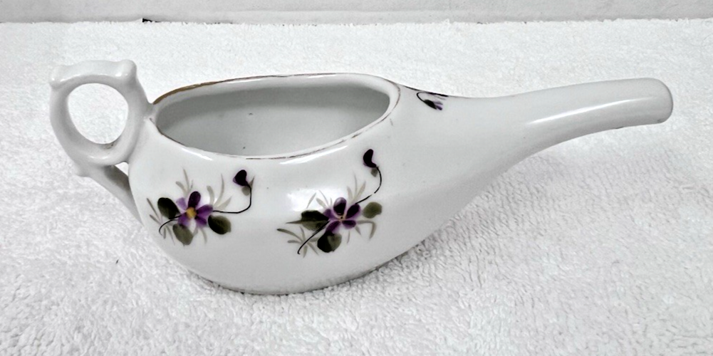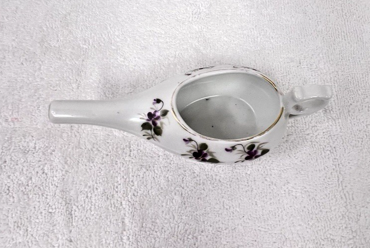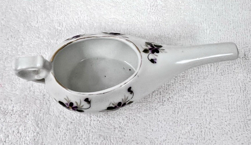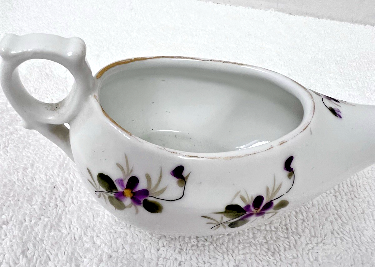 Victorian Invalid Baby Feeder w Hand Painted Violets Gold Trim 5 3/4 Inch