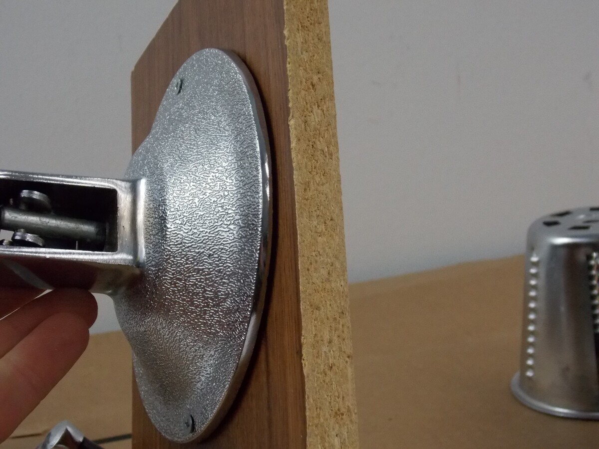 nice high quality kitchen cutter similar to if not the same as king cutter or kitchen gourmet, this unit is made in USA, only issue is the suction cup base was screwed down to a piece of wood so the new owner will need to use some kind of exterior clamp to secure this to a table edge or take apart and maybe the suction will still work? not sure as it has been punctured on the edges, anyways still a budget priced set up for someone.