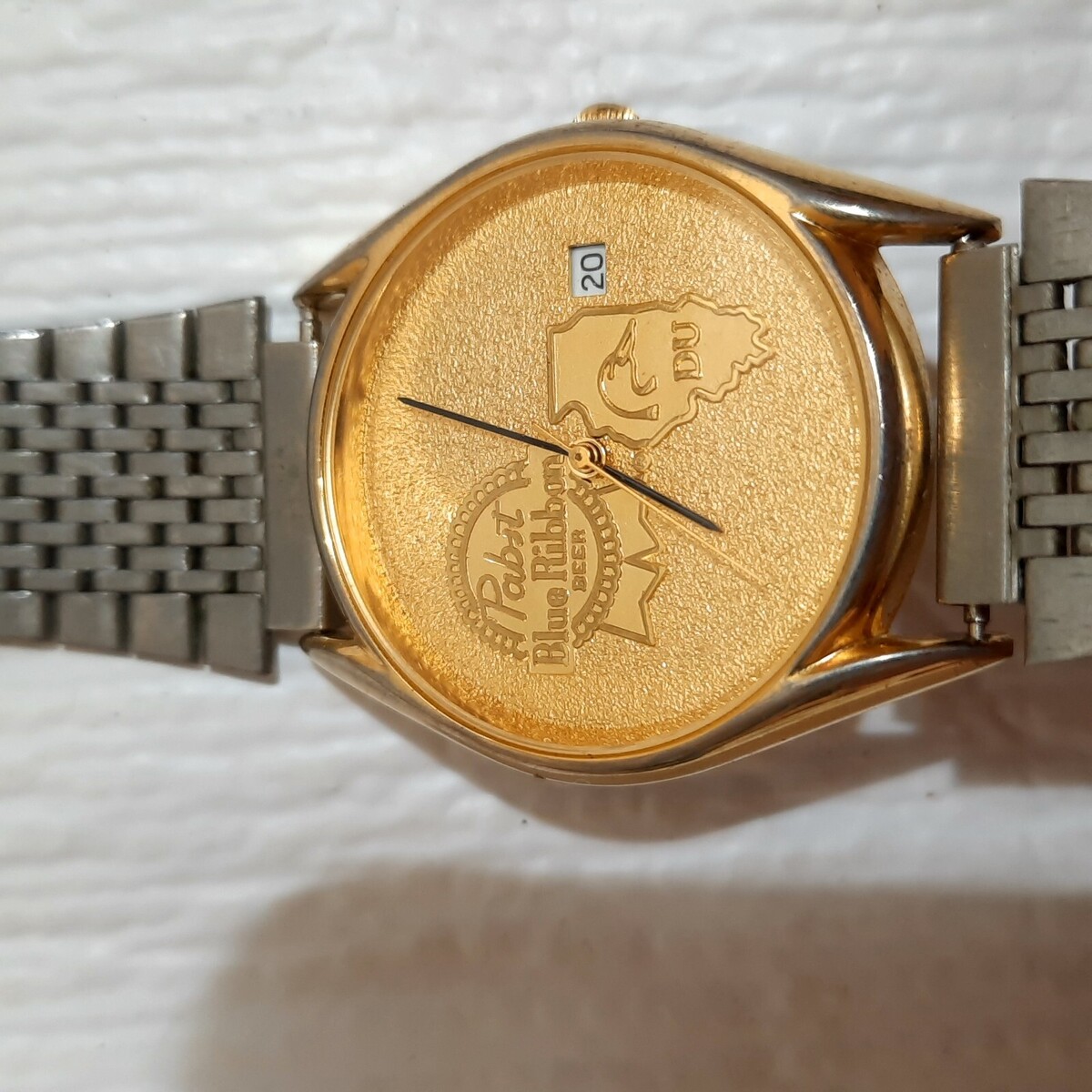 Pabst Blue Ribbon beer wrist watch metal strap men's advertising PBR Illinois