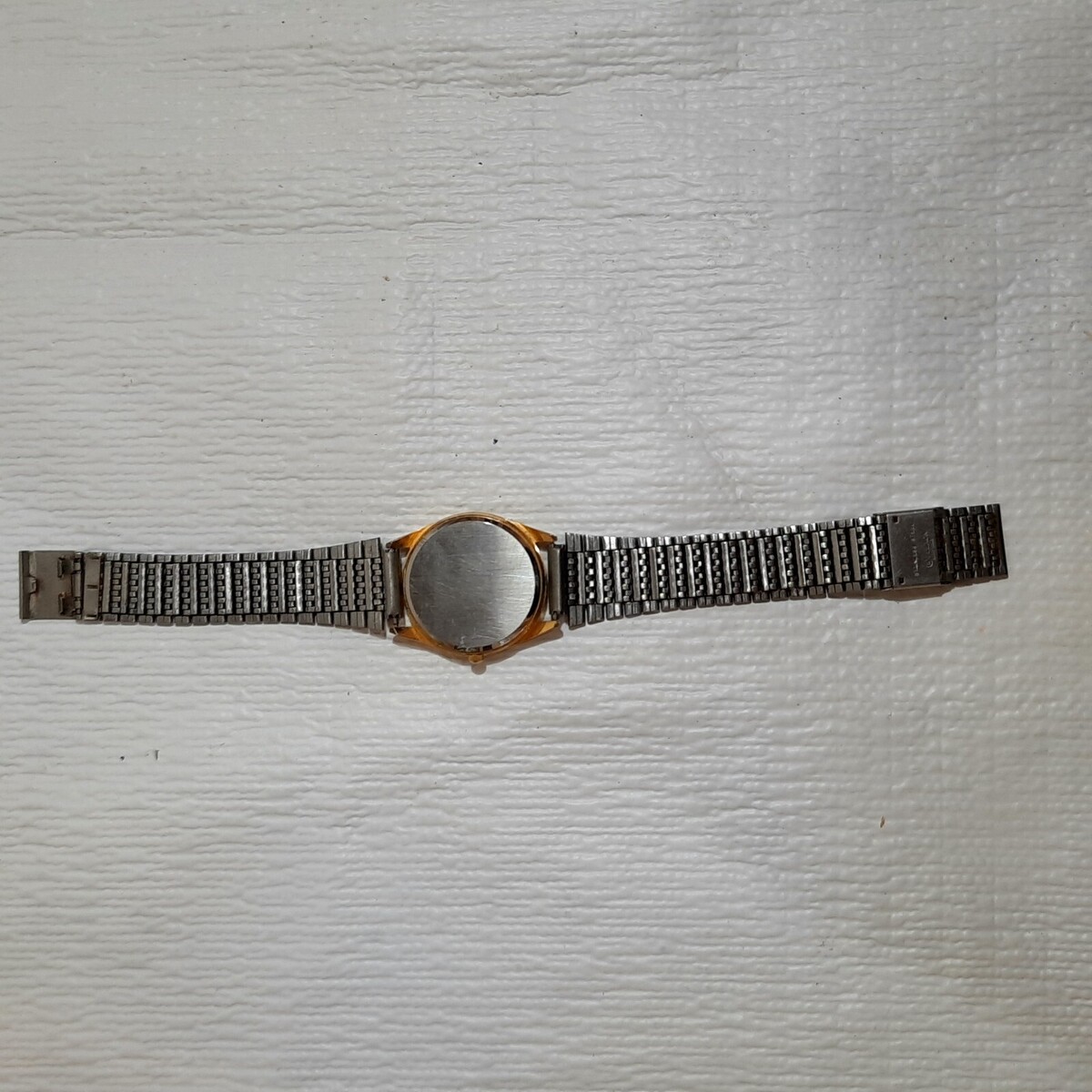 Stainless steel band. Very good condition with some minor wear/scratches from use. See pics. NEEDS NEW BATTERY.
