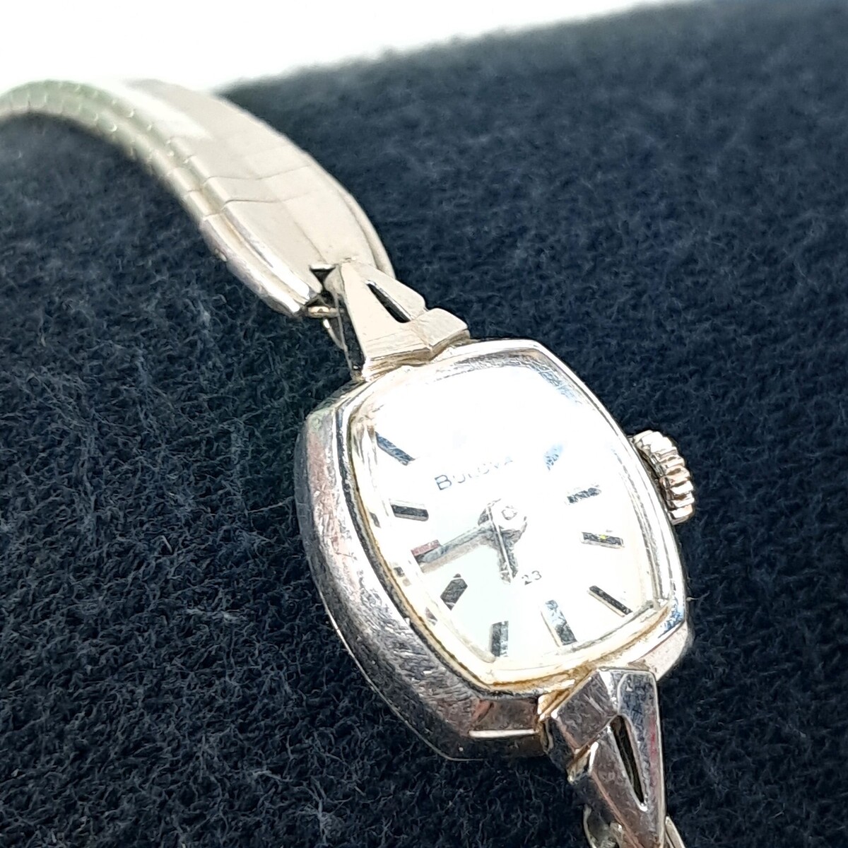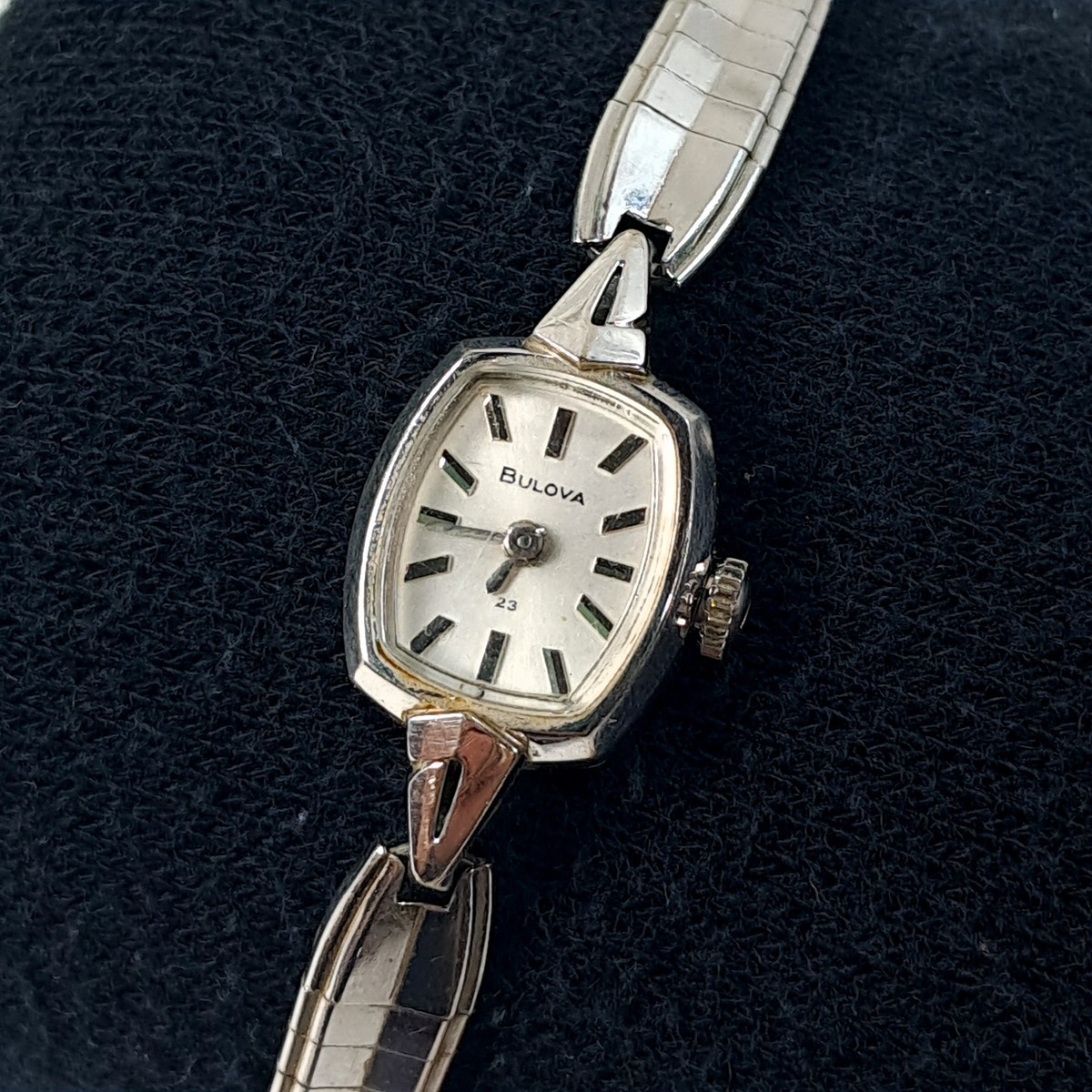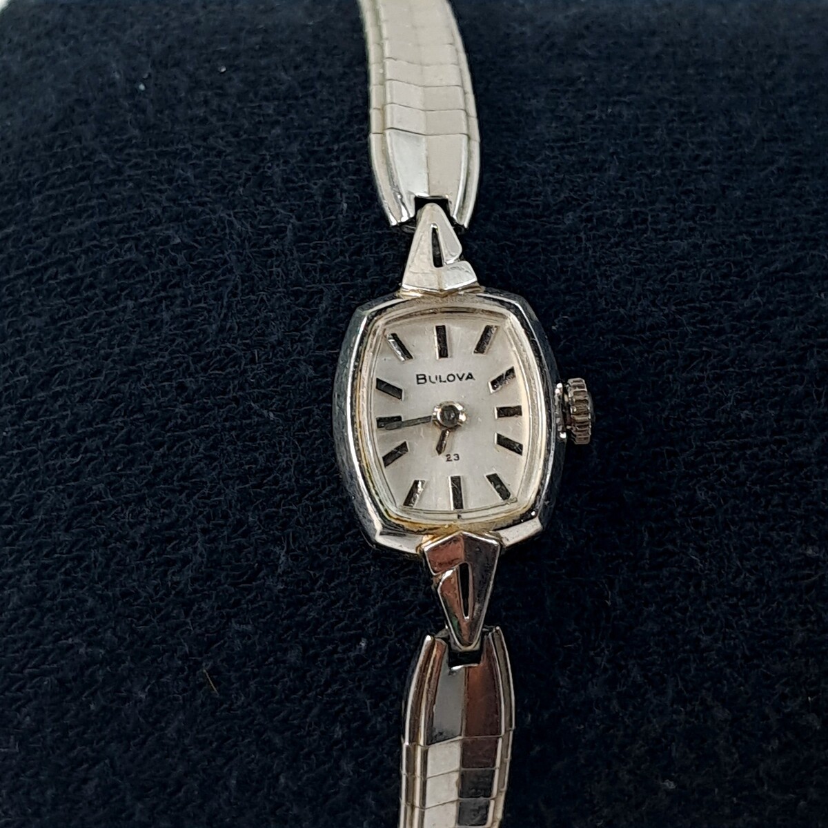 Vintage Bulova watch 23 jewels 10K white gold bracelet ladies women's RGP bezel