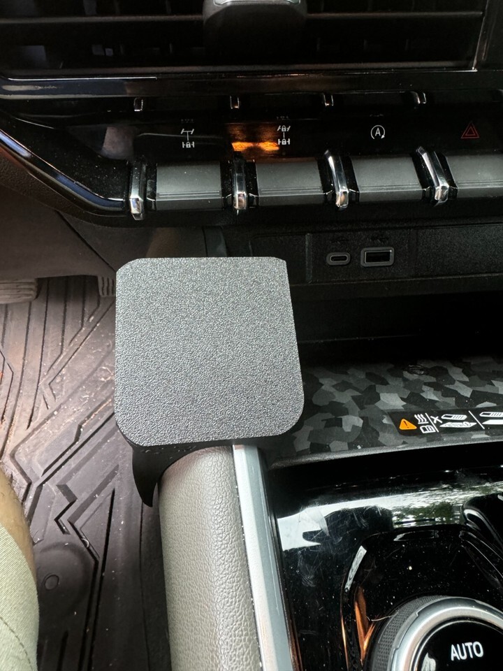 Very easy install, just slip on to the side of your center console or use the included double sided tape to mount.