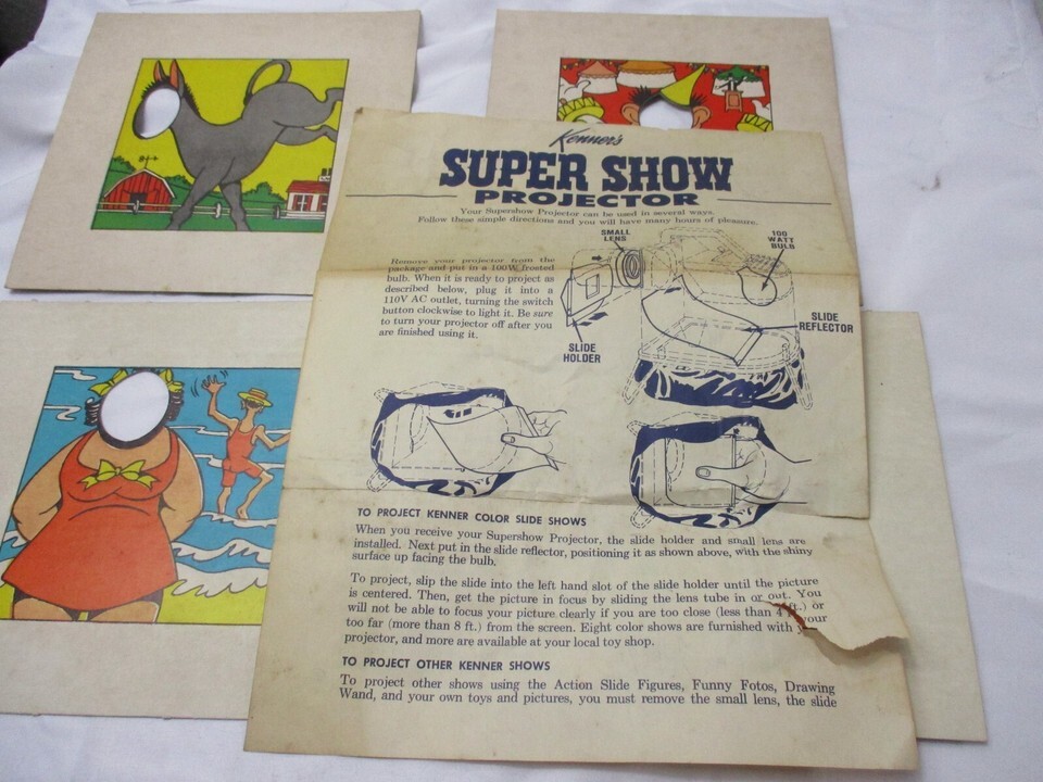 DESCRIPTION OF ITEM: This lot is for the Kenner's Super Show Projector, Everything in nice condition accept for the instructions which have tears, Please see pictures for what you will receive.