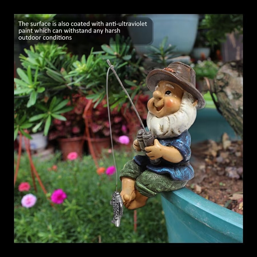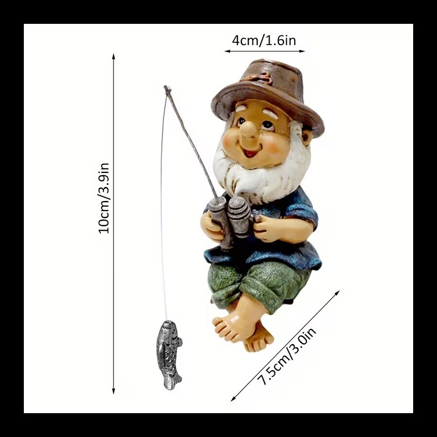 Fishing Gnome Sitter Statue 4" Plant Pot and 50 similar items