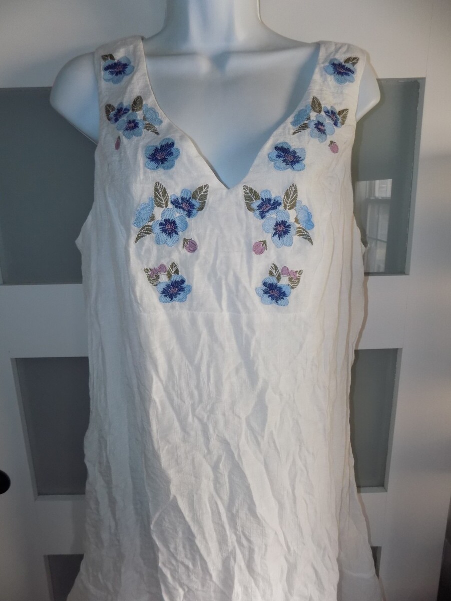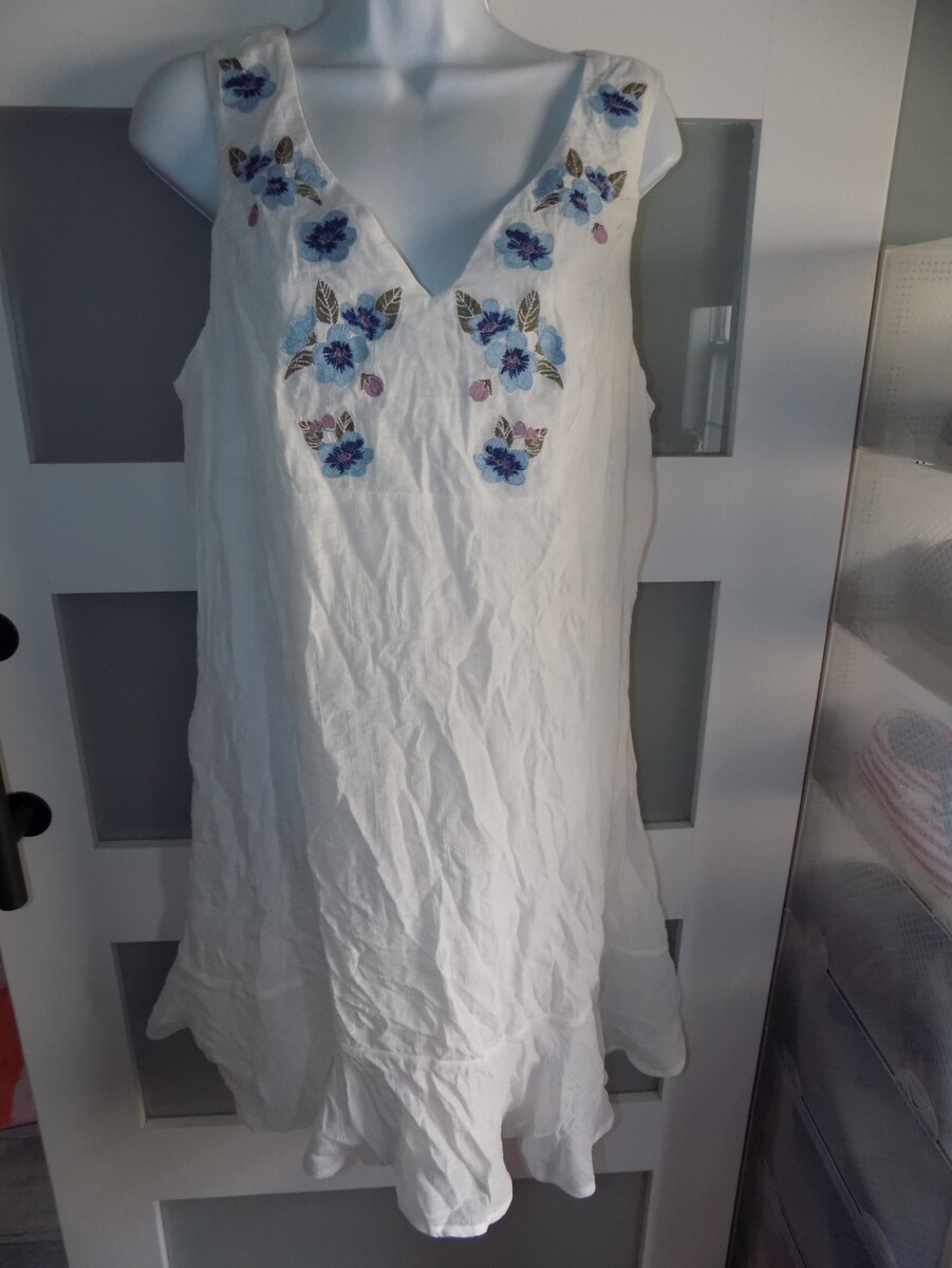 LUXOLOGY WHITE W/ EMBROIDERY FLOWERS LINED DRESS SIZE 12 WOMEN'S NWOT