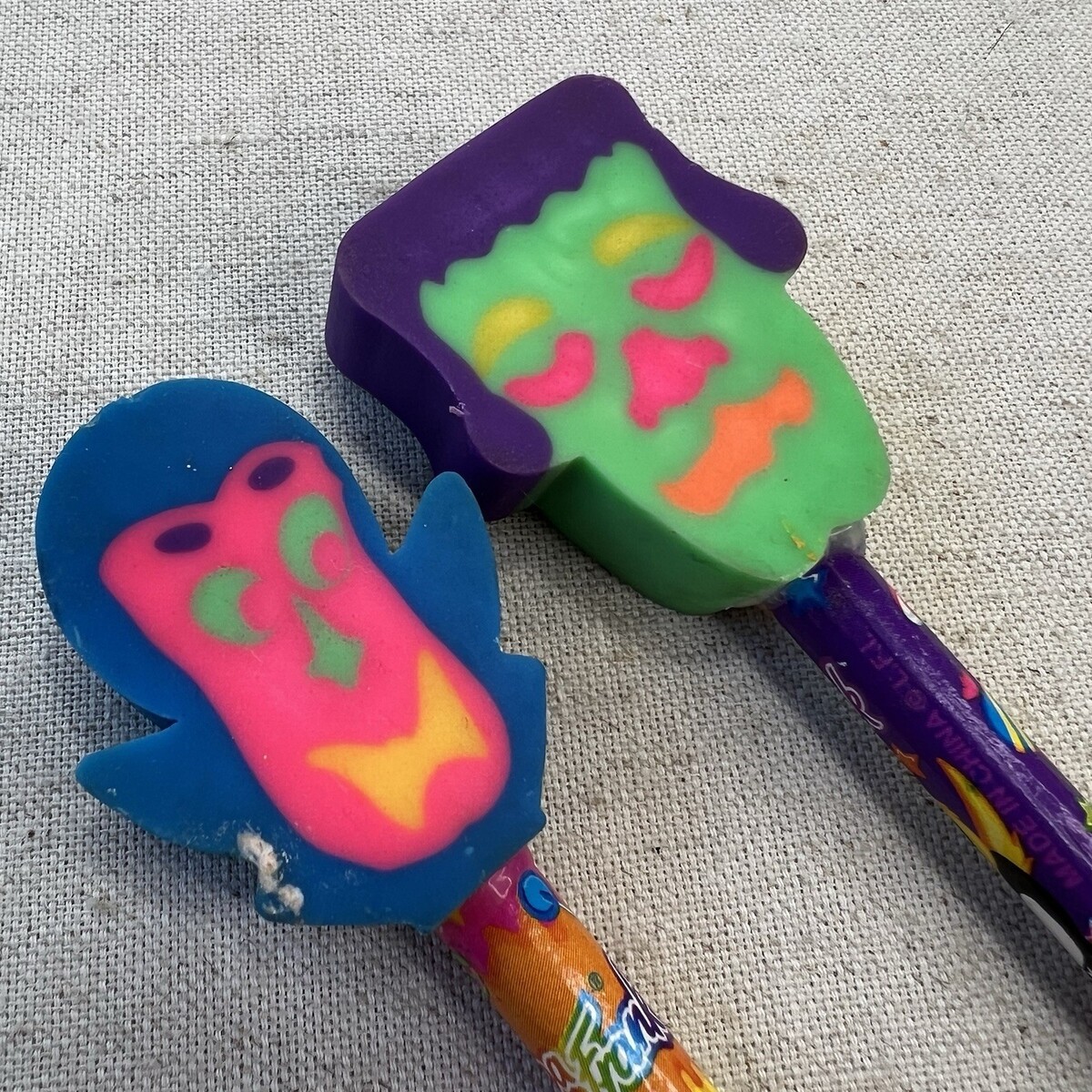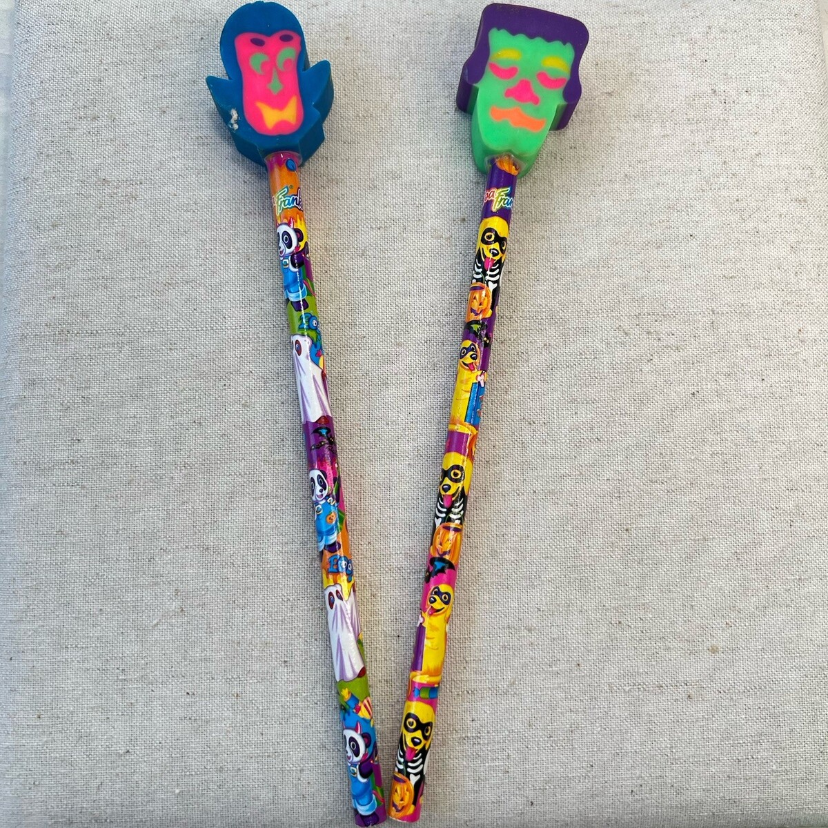 2 Lisa Frank Halloween Pencil Eraser Top Frankenstein Vampire Panda Casey Candy