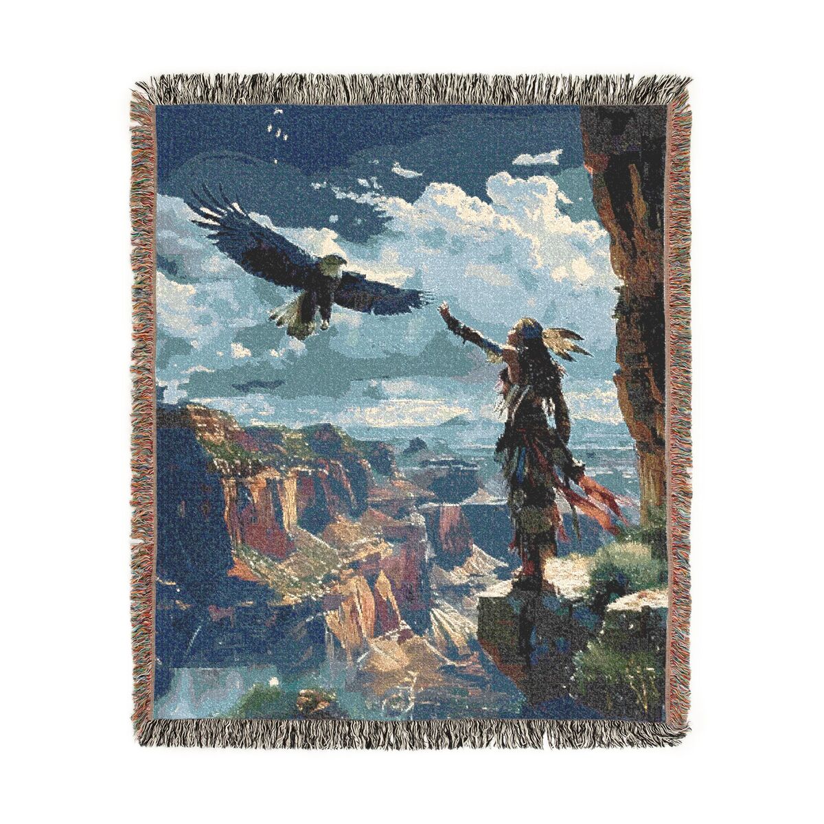 Eagle Native American Woven Blanket Throw Tapestry Indian Western Tribal Decor