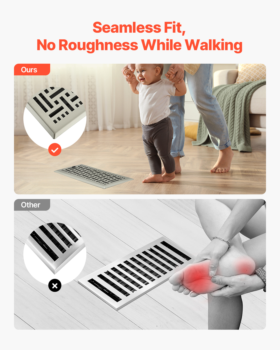 Seamless Arched Edge Design: Featuring a refined arched edge design, these air vent covers blend seamlessly with the floor for a clean and elegant look. This design helps avoid dust accumulation and makes cleaning effortless