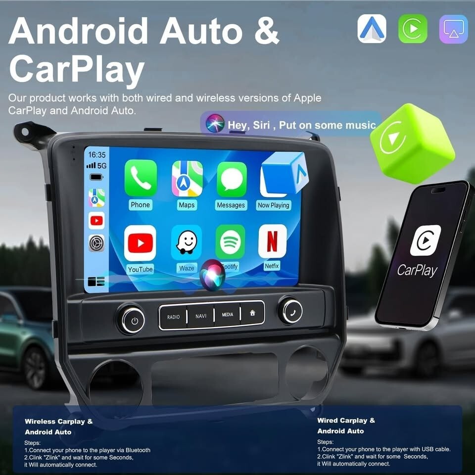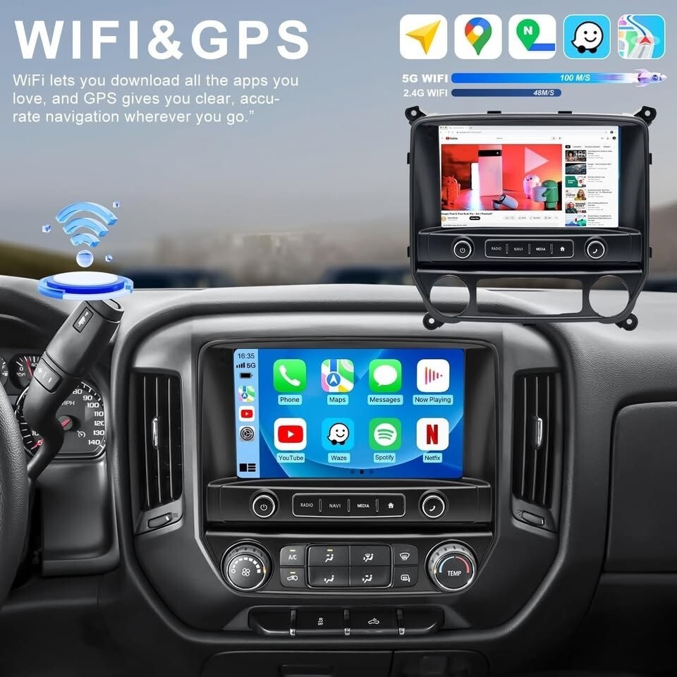 4G+64G 10" Car Radio Silverado Sierra 2014-18 Wireless CarPlay Android Auto GPS