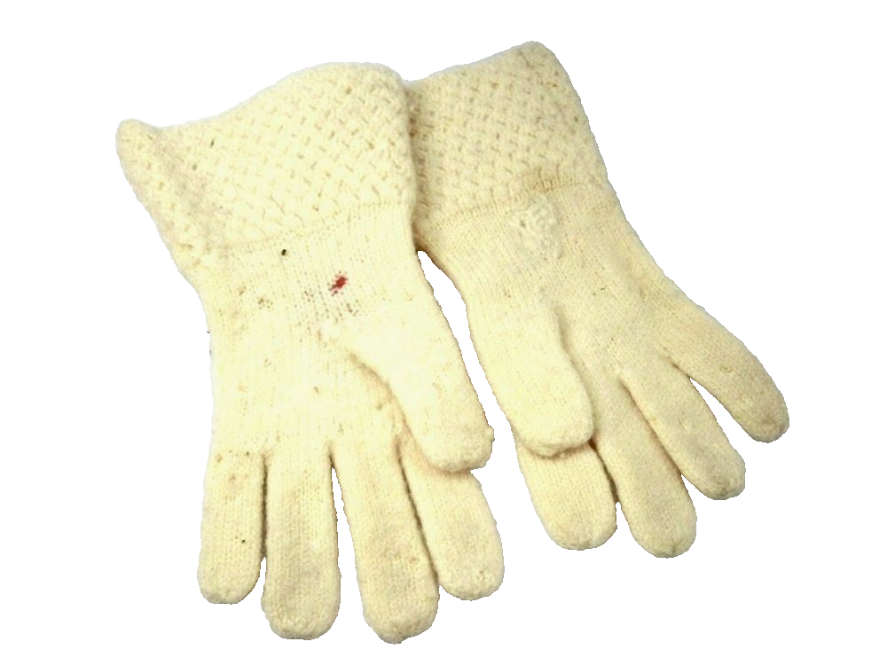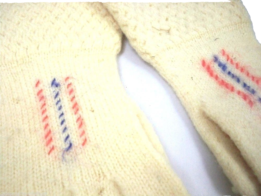 Authentic Antique Hand Knit Childrens Gloves Ivory Red Blue Stitch Display 6.5"