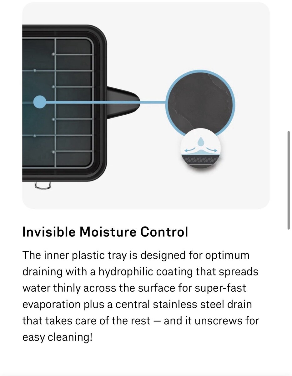The Simplehuman Matte Black Steel Frame Dish Drying Rack KT1207DC is a sleek and durable kitchen essential that helps keep your dishes dry and organized. Made of high-quality steel with a stylish black color, this dish drying rack is designed by the reputable brand simplehuman. The model KT1207DC offers a practical and efficient solution for drying your dishes, making it a must-have for any kitchen. Perfect for limited counter space.
