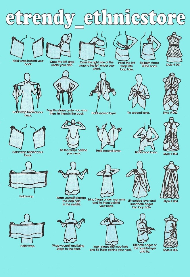 How to tie the Halter dress is not shown in the Instruction DVD nor the pamphlet. Kindly request the instruction from me during checkout or contact me and I will send it to you via email.