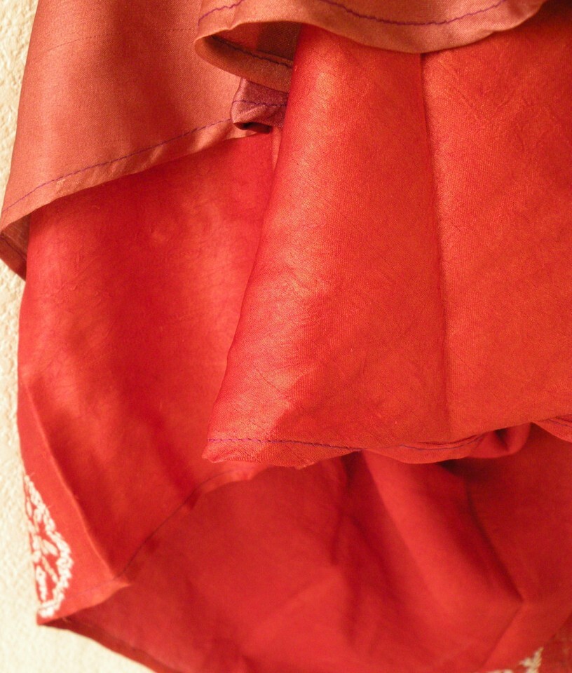These wraps/skirts are made from recycled vintage saree silks. To ensure that we sell high quality silk wraps/skirts, we have double inspect for visible flaws.
