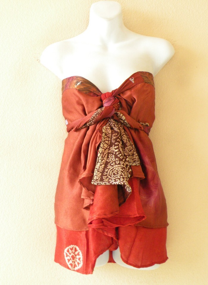 A luxurious blend of one of kind colors and prints enriched by a unique patterns. These beautiful 2 layers versatile vintage silk wraps offer an array of possibilities for over 100 ways to wear. You can achieve any number of looks from simple to sophisticated in skirt, dress, top, sarong, sari style, poncho or shawl.