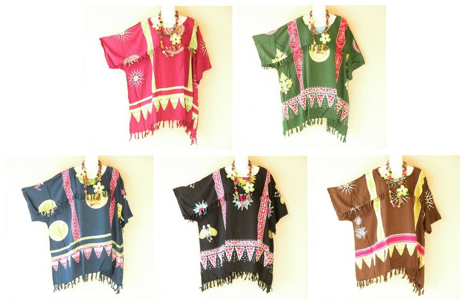 KG20 Boho Batik Fringes Plus Kimono Poncho Hippy Women Tunic Blouse Top up to 5X