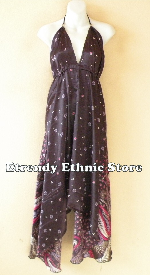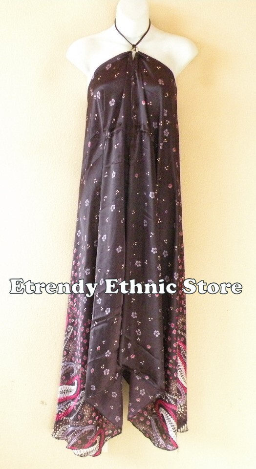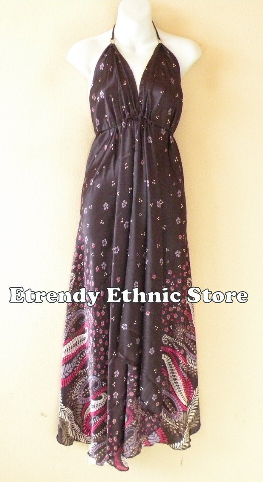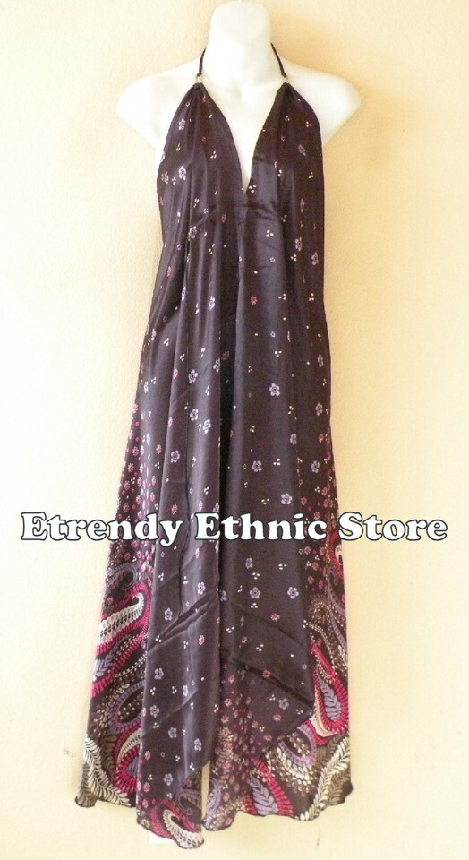 2D108 - Plum Versatile Silk Multi Scarf Women Maxi Long Dress, Skirt Maternity